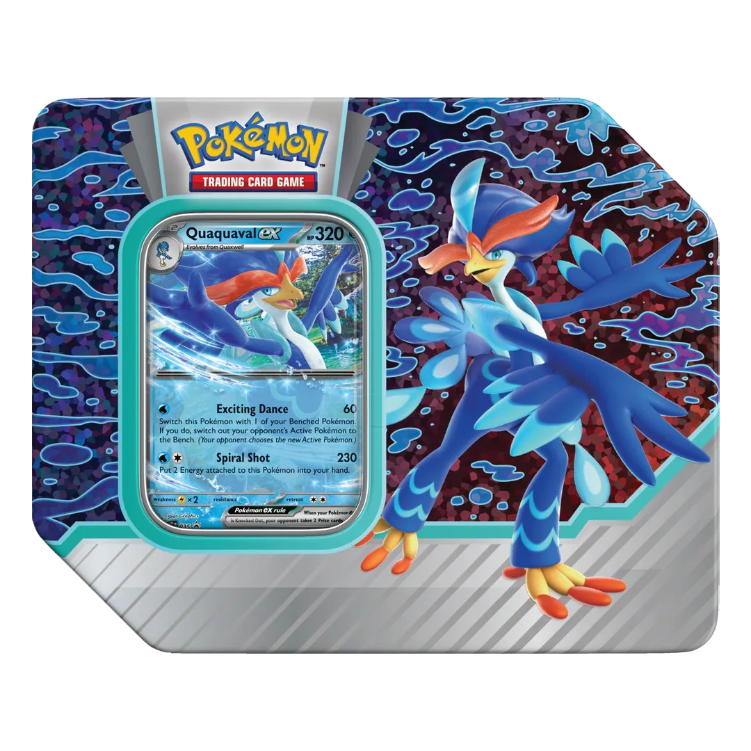 • 5 Pokémon TCG booster packs• 1 foil promo card featuring Meowscarada ex, Skeledirge ex, or Quaquaval ex• A code card for Pokemon TCG Live