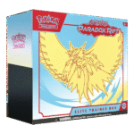 • 9 Pokémon TCG: Scarlet & Violet—Paradox Rift booster packs • 1 full-art foil promo card featuring Scream Tail Bundle • 65 card sleeves featuring Roaring Moon• 45 Pokémon TCG Energy cards • A player’s guide to the Scarlet & Violet—Paradox Rift expansion • 6 damage-counter dice • 1 competition-legal coin-flip die • 2 plastic condition markers • A collector’s box to hold everything, with 4 dividers to keep it organized • A code card for Pokémon Trading Card Game Live