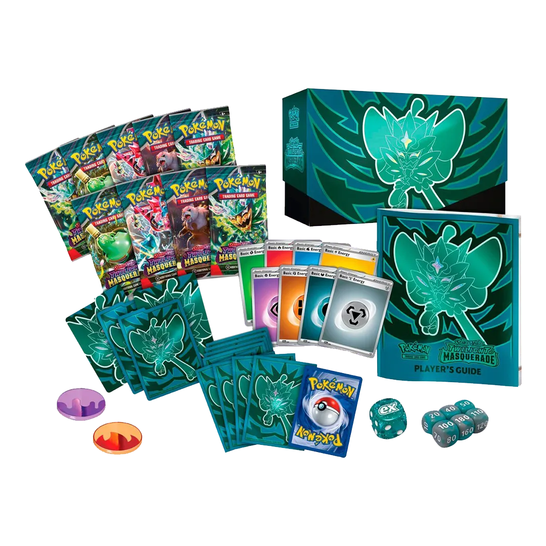 Welcome to the land of Kitakami, where people and Pokemon live harmoniously with nature. Folktales abound, but not all is as it seems… Uncover the mystery of the masked Legendary Pokemon Ogerpon, appearing as four fearsome types of Tera Pokemon ex, and team up with more newly discovered Pokemon, like Bloodmoon Ursaluna ex and Sinistcha ex. Growing in power, Greninja, Dragapult, and Magcargo dazzle as Tera Pokemon ex, and more ACE SPEC cards round out the festivities in the Pokemon TCG: Scarlet & Violet-Twilight Masquerade expansion! Over 160 cards, More than a dozen new Pokemon ex, More new ACE SPEC cards, More than 30 Trainer cards, and Dozens of Pokemon and Trainer cards with special illustrations.