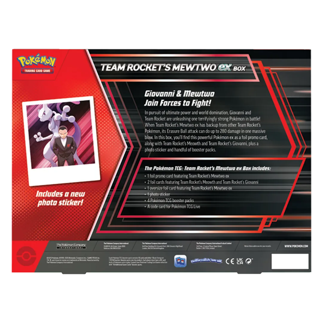 In pursuit of ultimate power and world domination, Giovanni and Team Rocket are unleashing one terrifyingly strong Pokémon in battle! When Team Rocket’s Mewtwo ex has backup from other Team Rocket’s Pokémon, its Erasure Ball attack can do up to 280 damage in one massive blow. In this box, you’ll find this powerful Pokémon ex as a foil promo card, along with Team Rocket’s Meowth and Team Rocket’s Giovanni, plus a photo sticker and handful of booster packs.