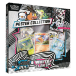 With 156 different Pokémon to discover, Unova is a region of grand opportunity for Pokémon Trainers! Fill out your own regional Pokédex starting with first partners Snivy, Tepig, and Oshawott as foil promo cards, then find more Unova Pokémon inside booster packs from the special Scarlet & Violet—Black Bolt and Scarlet & Violet—White Flare expansions. You also get a double-sided poster celebrating both expansions.